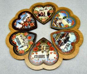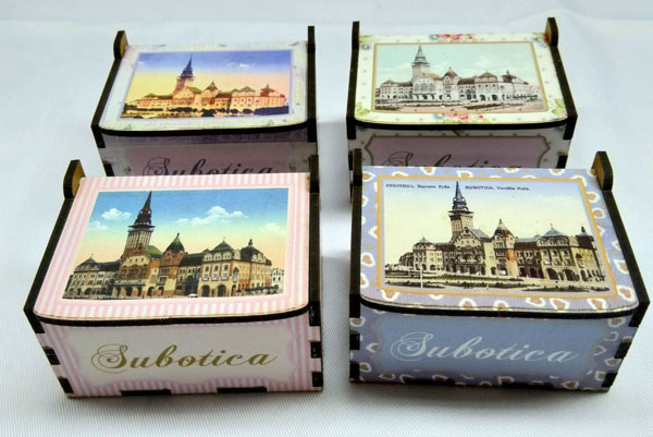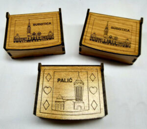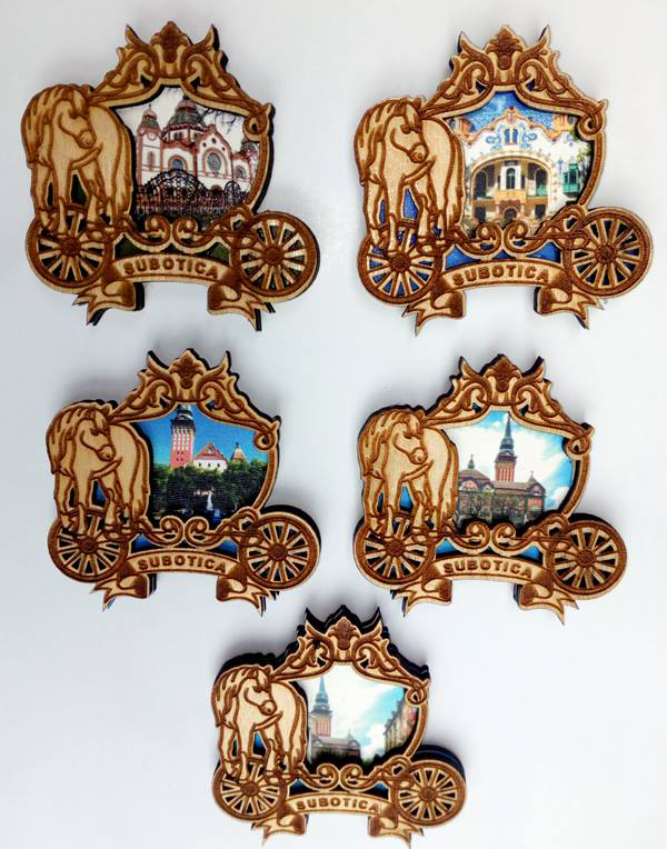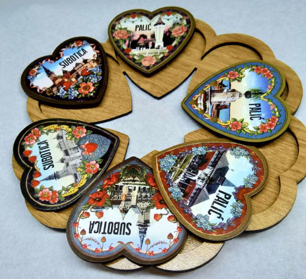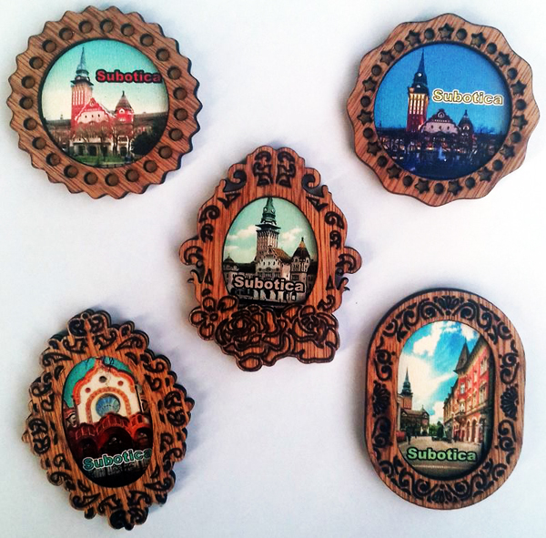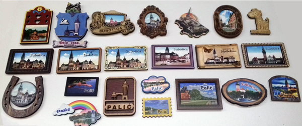 U ponudi imamo više vrsta magneta za frižider, šolje, satove, kutijice za nakit, ukrasne kutije za vino, kutije za ključeve, podmetače za čaše, stalke za pepeljare. U mogućnosti smo da izradimo magnete za frižider u oblicima i dimenzijama po Vašoj želji.